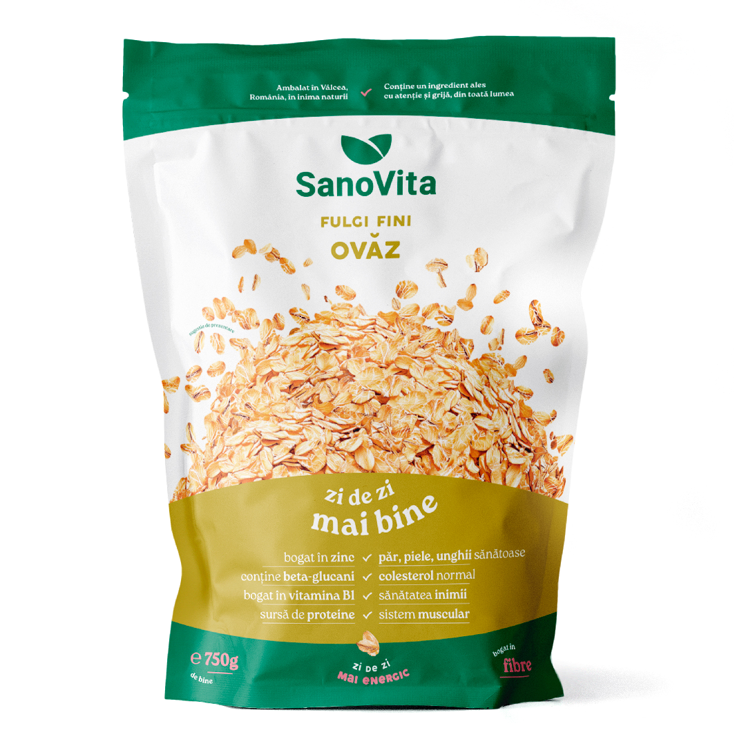 Fulgi de ovaz fini, punga cu zipper, 750 g, Sanovita la doar 12.4 lei!