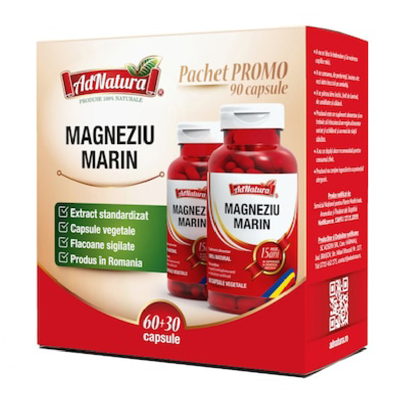 Pachet Magneziu Marin, 60+30 capsule, AdNatura la doar 34.64 lei!