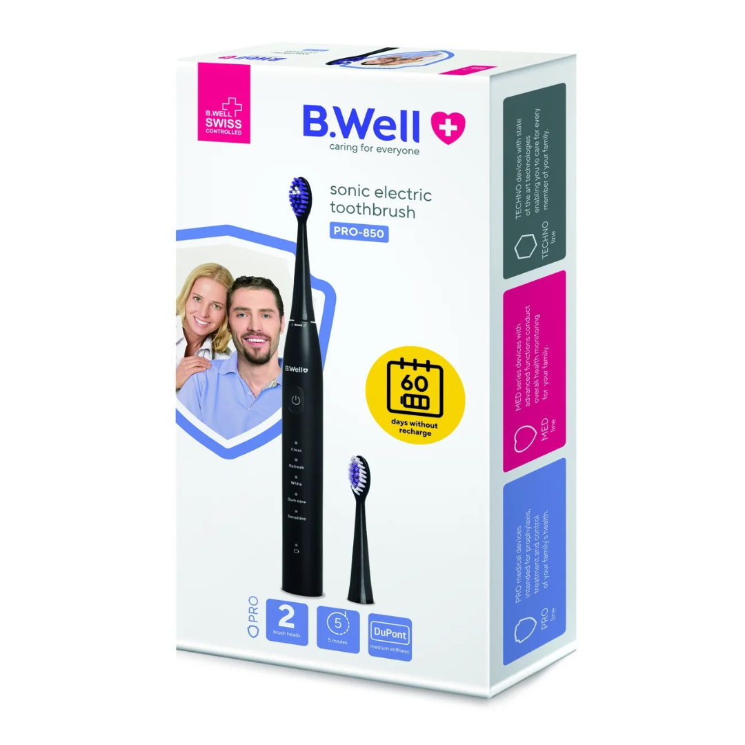 Gasiti Periuta electrica sonica PRO-850 neagra, 1 bucata, B.Well, Frumusete si ingrijire > Frumusete si ingrijire > Igiena orala > Frumusete si ingrijire > Igiena orala > Periute electrice, la cele mai bune preturi doar pe mBank.ro!