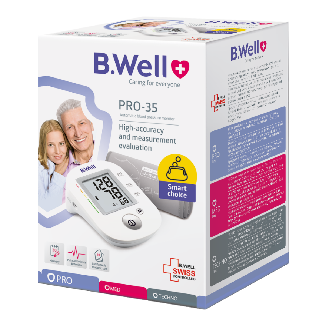 Tensiometru automat pentru brat manseta PRO-35, marimea M, 1 bucata, B.Well la doar 162.56 lei!
