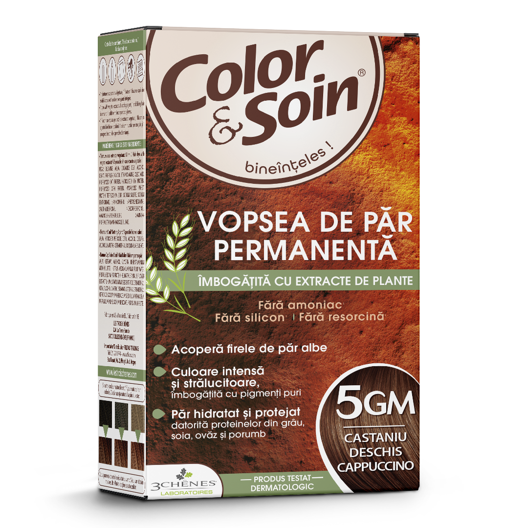 Vopsea de par fara amoniac, fara silicon, 5GM, castaniu deschis cappuccino, Color&Soin la doar 50.1 lei!